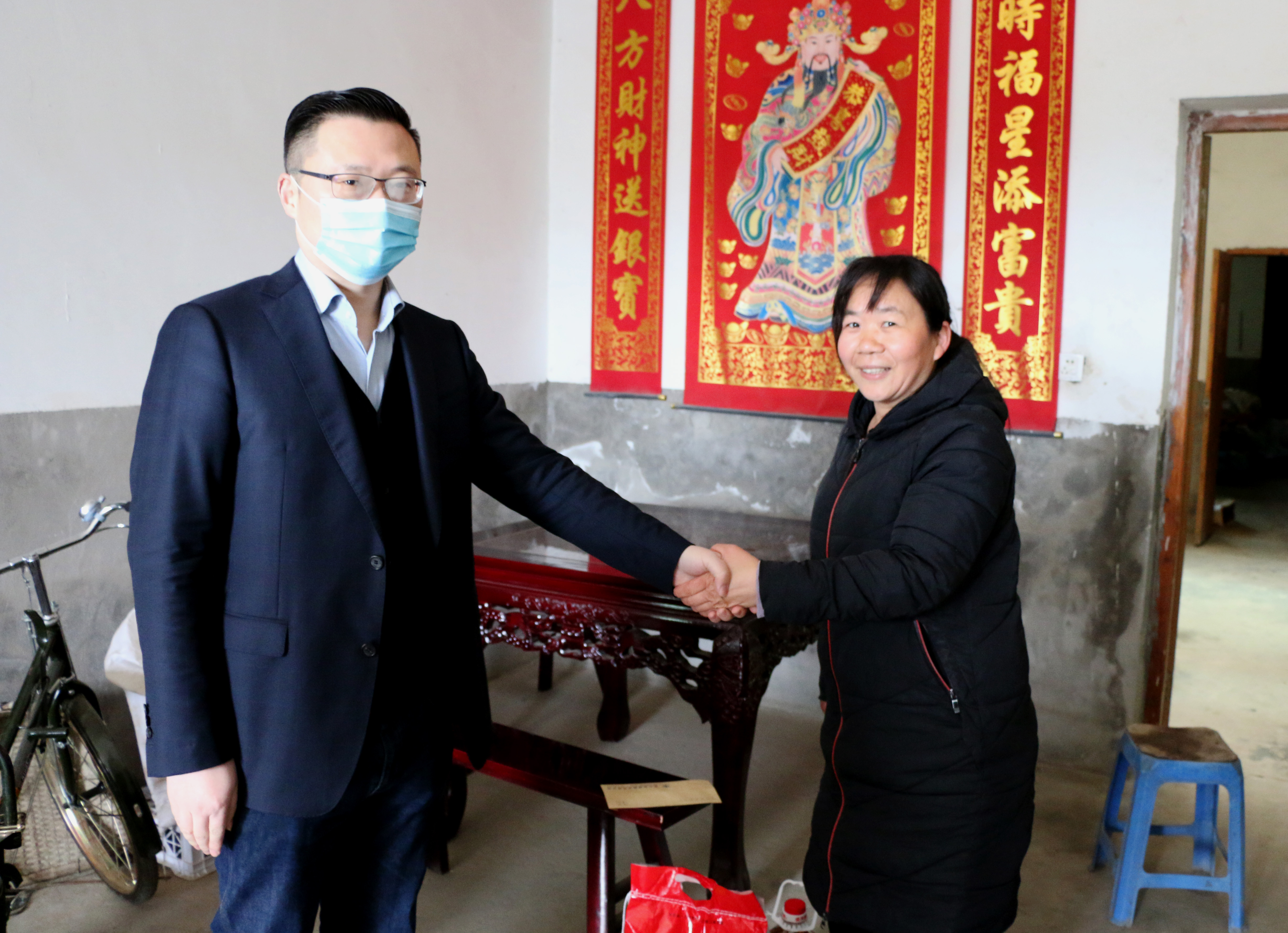 對于才59歲的范明發來說,妻子和兒子因心臟病相繼離世后,天仿佛要塌下來了,但是為了撫養兒子留下的一雙子女,他只能眼淚往肚里流,毅然決然地挑起了生活的重擔。慰問組一行沉默著聽他語速低緩地講述家庭的“變故”,詢問他近期和孩子們的身體狀況、生活情況,并將慰問品遞到他的手中。“有什么困難就說,你還有孩子們,生活有奔頭……”最是情深歲寒時,暖言一句勝三春。
